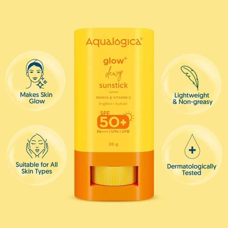Hey there, sunshine! Calling all glow-getters and sun-kissed fanatics, we’re here to make SPF your BFF. Introducing the epic Glow+ Dewy Sunstick with SPF 50+ and PA++++, which prevents those nasty UVA and UVB rays like a boss. And can be applied when you’re on the go under the sun! Whether you’re rocking out at a sundowner or conquering your day, just pop the sunstick out of your pocket, roll, and apply – it’s THAT easy! Sunscreen reapplication was never this easy and mess-free. This superhero in disguise is crafted with Vitamin C that brightens skin and evens out skin tone, giving you the glow-iest skin out there. Meanwhile, Papaya removes those pesky tan lines and leaves your skin feeling oh-so-smooth and bright. Now, let’s also talk about Hyaluronic Acid, a hydration superhero that ensures your skin doesn’t feel dry. Here’s the real kicker: it’s non-greasy and glides smoothly for easy reapplication, even over your killer makeup. With the perfect blend of fruits + actives, our Glow+ Dewy Sunstick, will help you glow and protect on the.